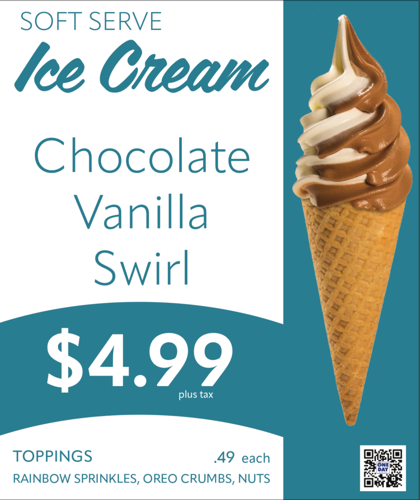 Soft Serve Ice Cream The best treat during those hot summer days! Enjoy Soft Serve ice cream and sundaes. See below for menu options.