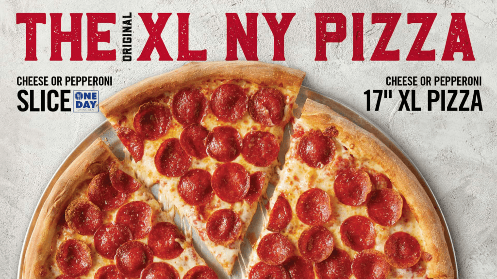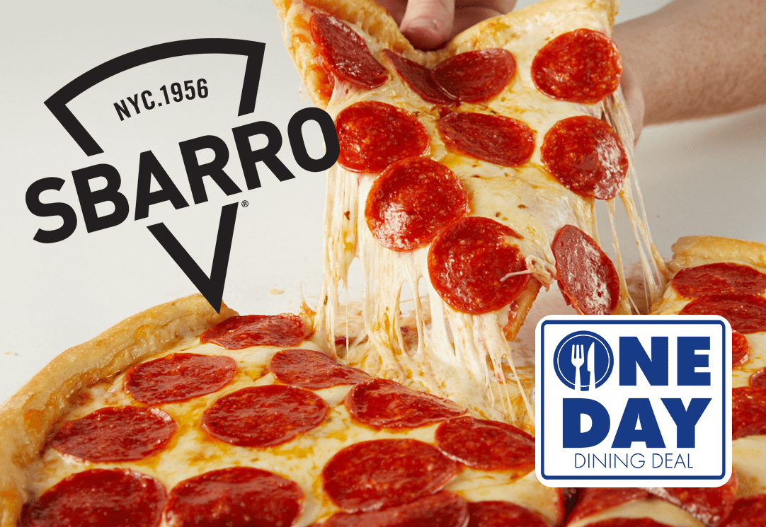 Sbarro Enjoy the original XL NY Style Pizza. Choose from cheese or pepperoni pizza as well as Stromboli, breadsticks, and cookies. See below for menu options.
