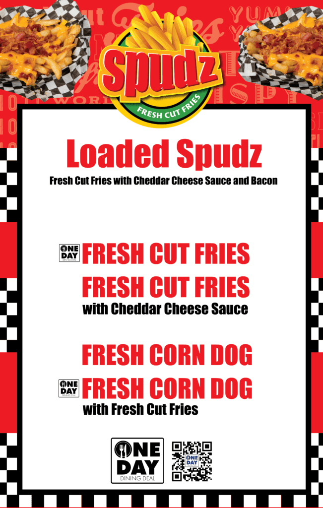 At Spudz, you’ll find fresh-cut fries loaded your way. See below for menu options.